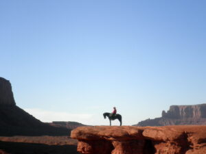 Kommt ein Reisender ins Monument Valley, stößt er dort unweigerlich auf den Namen eines großen Hollywood-Regisseurs, denn die staubige Ebene mit den drei markanten Felsformationen wird auch John-Ford-Country genannt. Als Tourist kann man von seinem> Lieblingsaussichtsplatz einen Blick auf die herrliche Landschaft werfen, und manchmal taucht sogar ein indianischer Ureinwohner auf einem> Pferd auf.