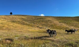Anschließend ging es weiter nach Süden. Die Landschaft veränderte sich dramatisch, die himmelstrebenden Granitnadeln verschwanden als erste, dann wurden die Berge immer flacher, um schließlich in eine weite Prärieebene überzugehen, die vornehmlich von Viehzuchtbetrieben dominiert wird. Statt majestätischer Bisons sahen wir nur noch profane Kühe, die auf eingezäunten Weiden friedlich grasten. Hübsch, aber auch eintönig.