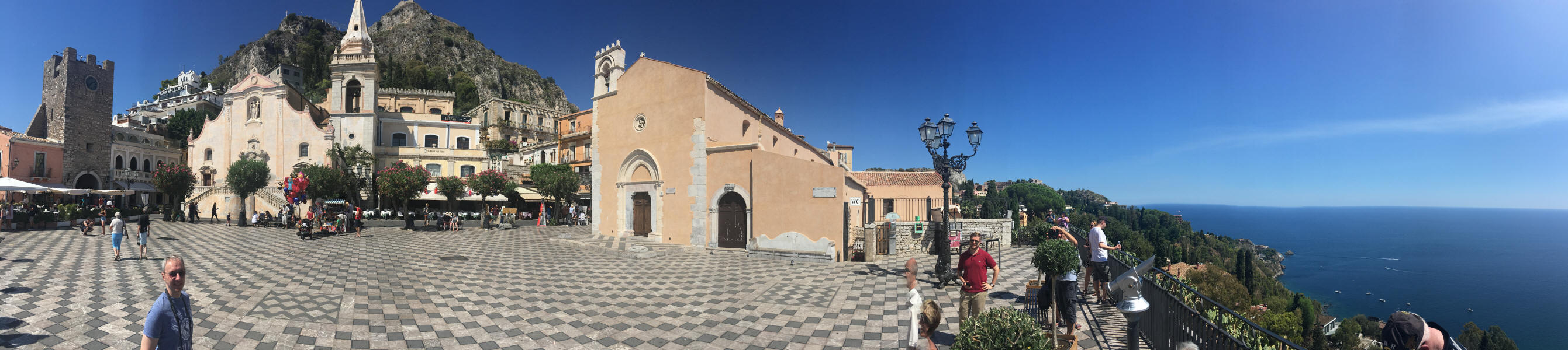 Da wir anderes vorhatten, beließen wir es bei diesem> Snack und machten uns etwas später auf den Weg nach Taormina, das der eine oder andere vielleicht noch aus den Nachrichten kennt. Vor ein paar Monaten fand hier der G7-Gipfel statt, und aus diesem> Anlass spendierte die Regierung der Stadt neue Straßen. Die hat Taormina auch bitter nötig, denn die zehntausend Einwohner müssen jedes Jahr eine Million Touristen verkraften.