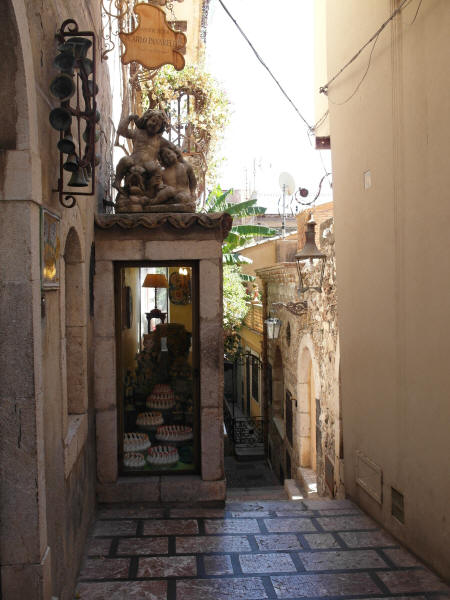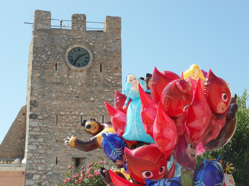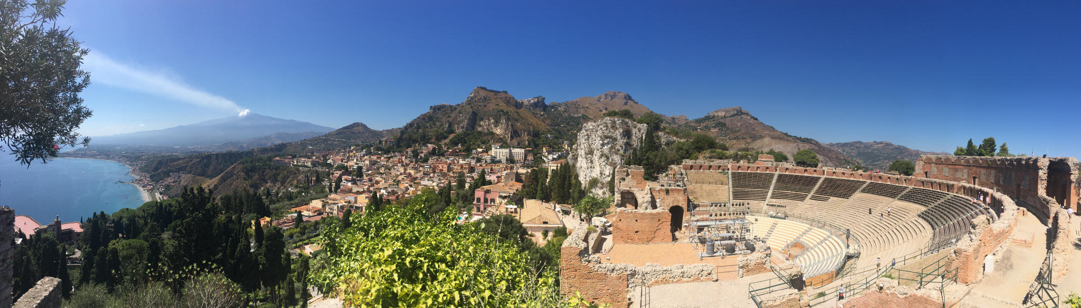 So sieht die Stadt aber auch aus. Souvenirläden, wohin man blickt, dazwischen exklusive Boutiquen und jede Menge Restaurants und Hotels. Der Ort ist wunderschön, sehr aufgeräumt und proper, aber das Zentrum hat auch etwas Unwirkliches an sich, weil ihm all das fehlt, das zu einer normalen Stadt gehört. Sehenswert ist neben der hübschen Altstadt vor allem> das antike Amphitheater, das von den Griechen erbaut und von den Römern umgestaltet wurde. Es liegt oberhalb der Stadt und ermöglicht einen großartigen Blick auf die Bucht mit dem> rauchenden ätna im Hintergrund.