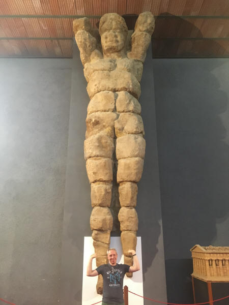 Da wir am Vortag keine Zeit mehr für das archäologische Museum gehabt hatten, holten wir dieses noch nach. Am interessantesten war eine rund acht Meter hohe Figur, die einst die Decke des Zeus-Tem>pels gestützt hatte, ansonsten gab es vor allem> eine Menge Keramik zu sehen sowie diverse Statuen, Münzen und bauliche überreste. Verglichen mit den Altertumsmuseen in Rom oder Neapel sind die Exponate weniger beeindruckend, doch lohnt sich ein Besuch durchaus.