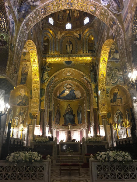 Der Normannenpalast mit seiner Kapelle voller goldgrundiger Mosaike gehört ebenfalls zu den absoluten Highlights von Palermo, die man gesehen haben sollte, die Kathedrale hingegen ist von außen schöner als von innen. Beide Orte waren ziem>lich überlaufen, was ihnen etwas von ihrem> feierlichen Ernst raubte, aber absolut sehenswert.