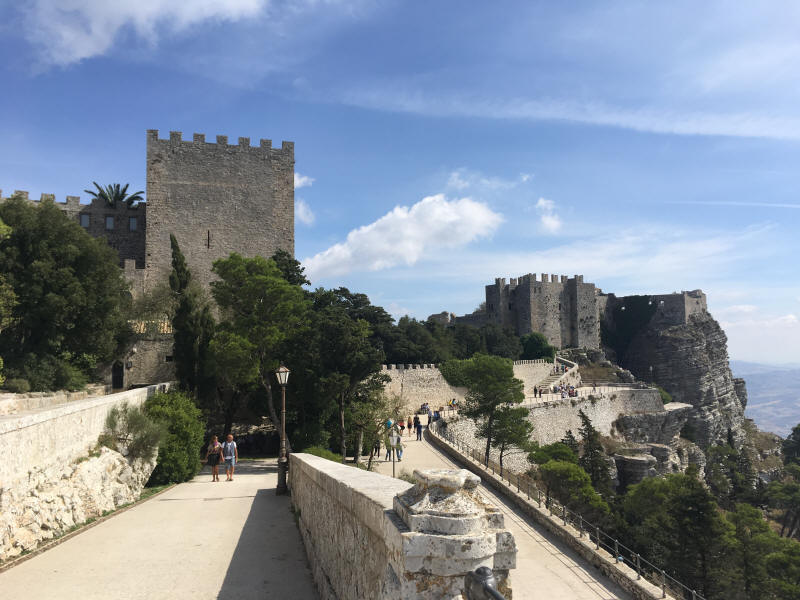 Eine knappe Autostunde entfernt liegt Erice, ein uraltes Bergstädtchen, das als ?das sizilianische Rothenburg ob der Tauber? gehandelt wird, weil es sich weitgehend seinen mittelalterlichen Charme bewahrt hat. Von seinen Mauern hat man einen wunderschönen Blick auf die umliegenden Ebenen und das Meer, dafür muss man jedoch eine steile, zum Glück gut ausgebaute Straße hinauffahren.