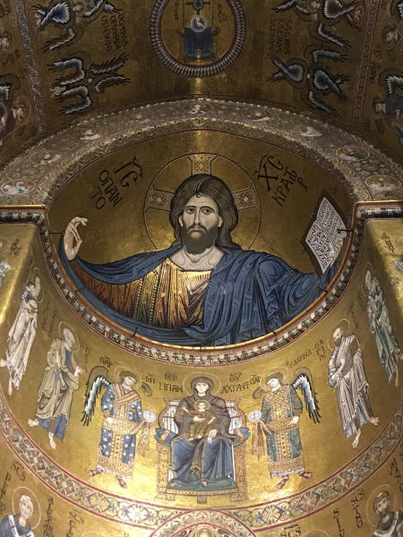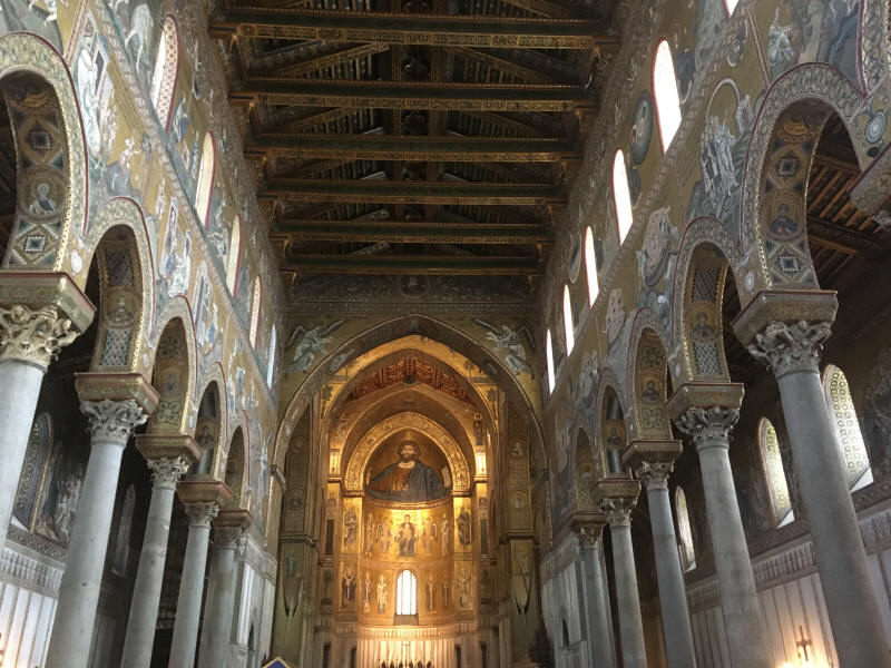 Von der Stadt haben wir nur wenig gesehen, der Dom ist dafür umso beeindruckender: Im Mittelalter von den Normannen erbaut, prunkt er mit unzähligen Mosaiken auf Goldgrund, die die gesamte Bibel nacherzählen: Adam und Eva, die Arche Noah und die Lebensgeschichte von Jesus – es war ein heiteres Bilderraten. Punkt zwölf Uhr Mittag wurde auch gebetet, zuvor läutete aber jem>and eine kleine, doch sehr laute Glocke ? und erschreckte uns Touristen, die direkt darunter standen, fast zu Tode.