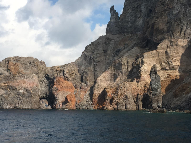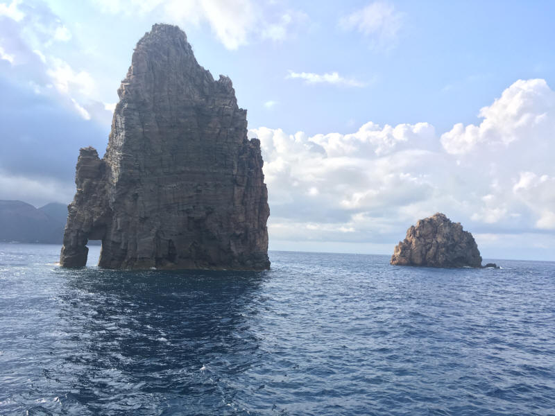Zunächst steuerten wir Vulcano an, die Insel, die Sizilien am nächsten liegt, um ein paar pittoreske Felsen und Höhlen im sanften Morgenlicht zu bewundern, die klangvolle Name wie ?Löwenkopf? oder ?Pegasus-Höhle? tragen, weil man in ihnen einen Raubtierkopf oder ein geflügeltes Pferd erkennen soll, was mir nicht gelungen ist. Für mich sahen sie einfach nur nach ein paar Felsen aus, dabei dachte ich immer, ich wäre ein fantasievoller Mensch. Zudem> ranken sich zahlreiche Sagen um diesen Teil der Inselgruppe: Hier soll angeblich äolus Odysseus em>pfangen haben. Aber auch ohne diesen mythologischen Unterbau sehen die Küstenabschnitte schön aus.