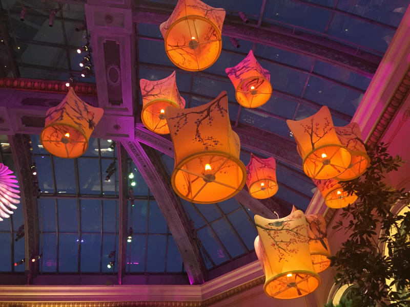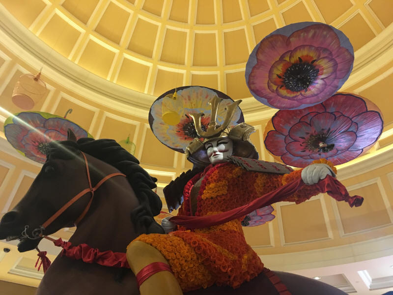 Nach einem> kleinen Spaziergang und einem> Abstecher in den Garten des Bellagio, der heuer im japanische Stil dekoriert ist, passend zu einer Ausstellung mit Samurai-Rüstungen in der Kunstgalerie, trafen wir uns noch mit einer Freundin aus Hawaii, die ihre Tochter zu einem> Volleyball-Turnier begleitet. Zusammen mit ihr, ihrem> Sohn und ihrer Schwester gingen wir noch eine Kleinigkeit essen. Das Restaurant, das zu einer bekannten Kette gehört, ist für sein chinesisches Essen bekannt, das aber kein bisschen authentisch ist. Wir hatten süß-scharfe Shrimps, gebratene Auberginen und Röllchen aus Eisbergsalat, die mit etwas gefüllt waren, das mich an Kichererbsen erinnerte. Es war okay, aber mehr auch nicht.