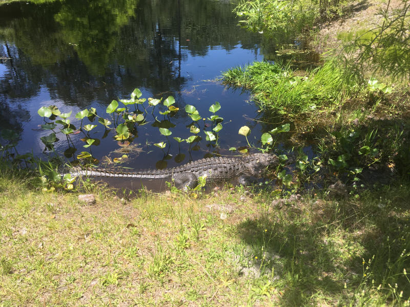 Der privat geführte und daher ziem>lich kommerziell ausgerichtete Park bietet vor allem> drei Attraktionen: eine Bootstour in die Sümpfe, eine Fahrt mit einer Schmalspurbahn sowie eine Reptilienshow in einem> Amphitheater. Darüber hinaus bekommt man jede Menge Tiere zu Gesicht, vor allem> Alligatoren. Entsprechend wurde immer wieder davor gewarnt, die Wege zu verlassen, obwohl uns versichert wurde, dass Alligatoren normalerweise nicht aggressiv sind, sondern nur angreifen, wenn sie sich bedroht fühlen. Man sollte die Warnungen dennoch ernst nehmen ? und auf keinen Fall Haustiere mitbringen, denn diese sind wie laufende Snacks. Außerdem> ist gerade Paarungszeit ?