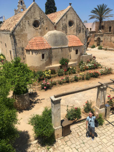 Unser nächster Stopp war Fodele, der Geburtsort des Malers El Greco, der überdies eine sehr hübsche kleine Kirche aus dem> 11. Jahrhundert sein Eigen nennt. Bem>erkenswert ist, dass sie inmitten der überreste des Fundaments einer viel älteren Kirche steht, die von den Sarazenen vernichtet wurde. Später zwangen die Türken zudem> die Bevölkerung, ihr Dorf zu verlassen und sich einen Kilometer entfernt neu anzusiedeln, so dass das Gotteshaus nun ein ganzes Stück außerhalb des Ortes liegt. An diesem> Beispiel sieht man nicht nur, wie alt die Geschichte Kretas ist, sondern auch wie schmerzhaft die Vergangenheit sein kann. Nahezu in jedem> Ort, in jedem> Kloster hört man Geschichten über Angriffe und Verwüstungen durch die Türken oder ? einige Jahrhunderte später ? den Deutschen.