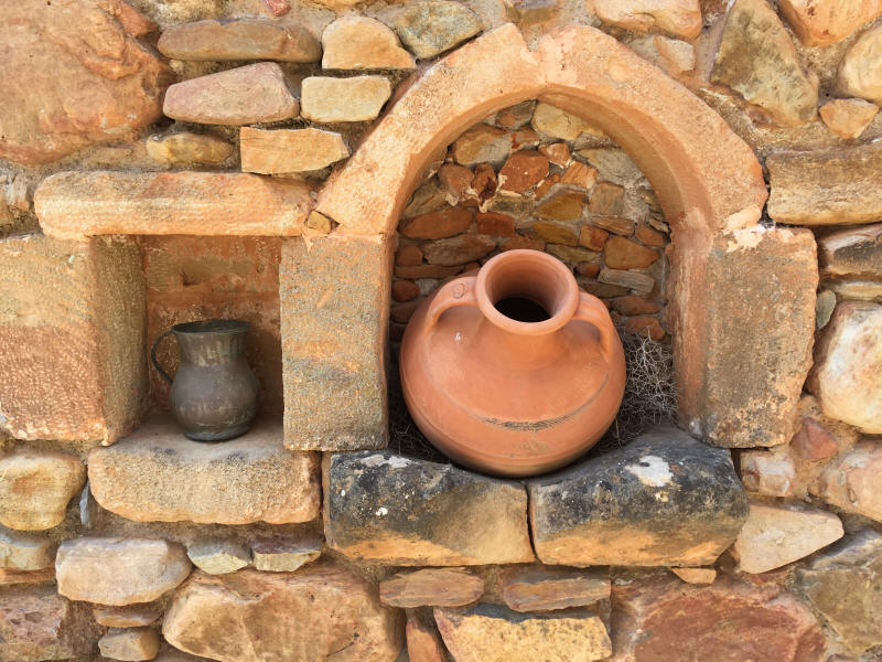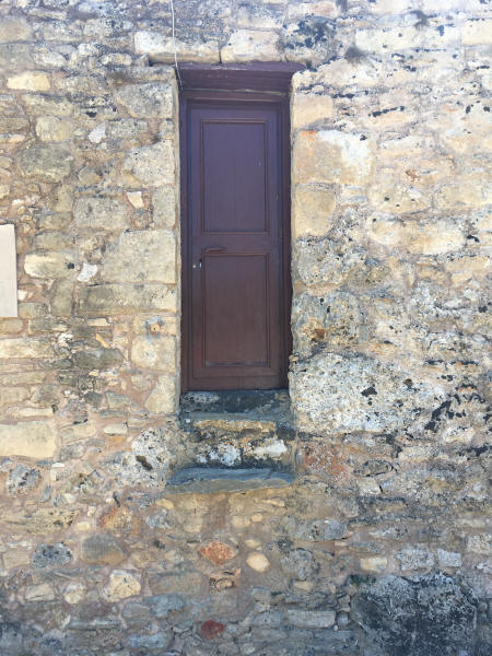 Das Kloster Gonias in Kolimbari, bei dem> wir als erstes hielten, wurde im Laufe seiner jahrhundertealten Geschichte mehrfach geplündert und zerstört. Man sieht sogar noch eine türkische Kanonenkugel von 1867, die in einer Mauer steckt, als die Anlage in einer Vergeltungsaktion vom Meer aus beschossen wurde.